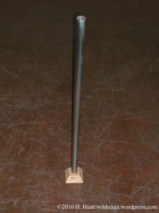 Today a coworker and I made a Festivus pole as a lunchtime project. I found a three foot aluminum pole at the store, and he whipped up a wooden base for it. I was so impatient to put the pole up that I tried to prop it up in a ceramic plant pot I found under the kitchen sink. It crashed to the ground in several pieces moments later.