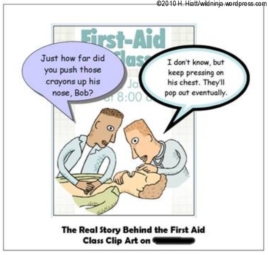 Some pictures just beg to be captioned. It’s funny how, when you look at a photo or picture, your mind can immediately think of a caption that’s different from the intended message. I saw this first aid class ad at work and couldn’t help myself.