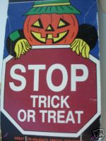 My first thought was “STOP TRICK OR TREATING!” as if this were some sort of protest against the tradition of knocking on doors to get sugary, fattening wrapped items.