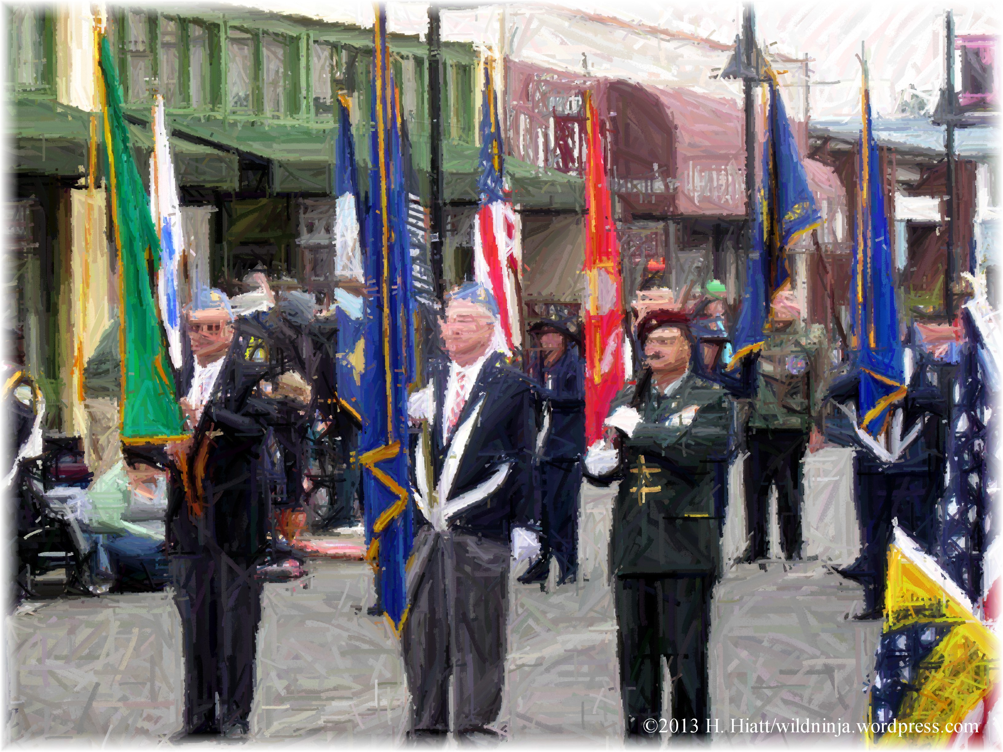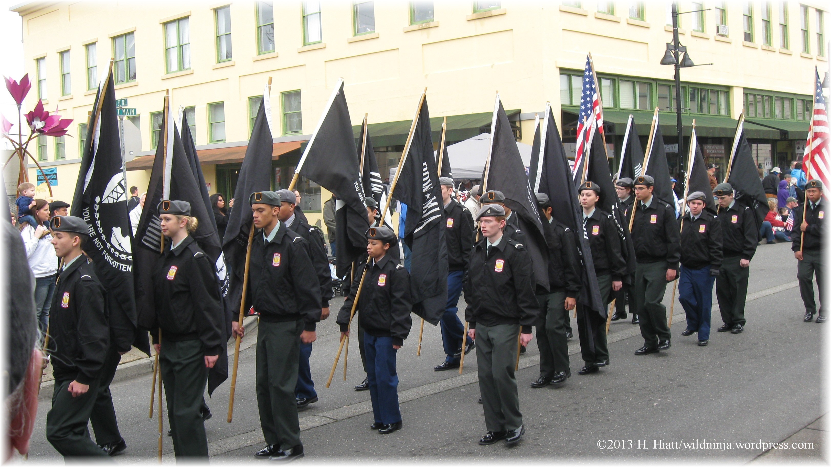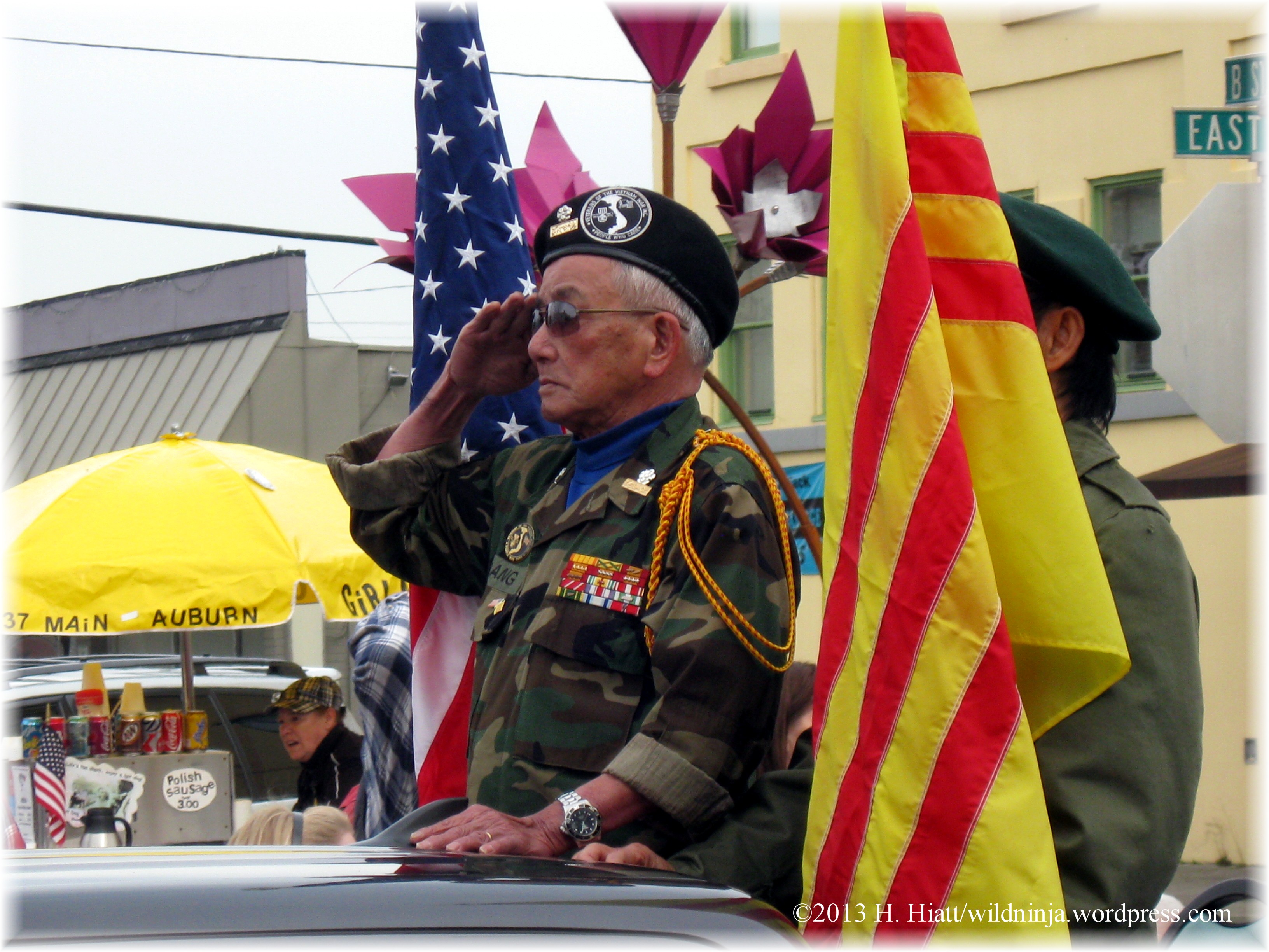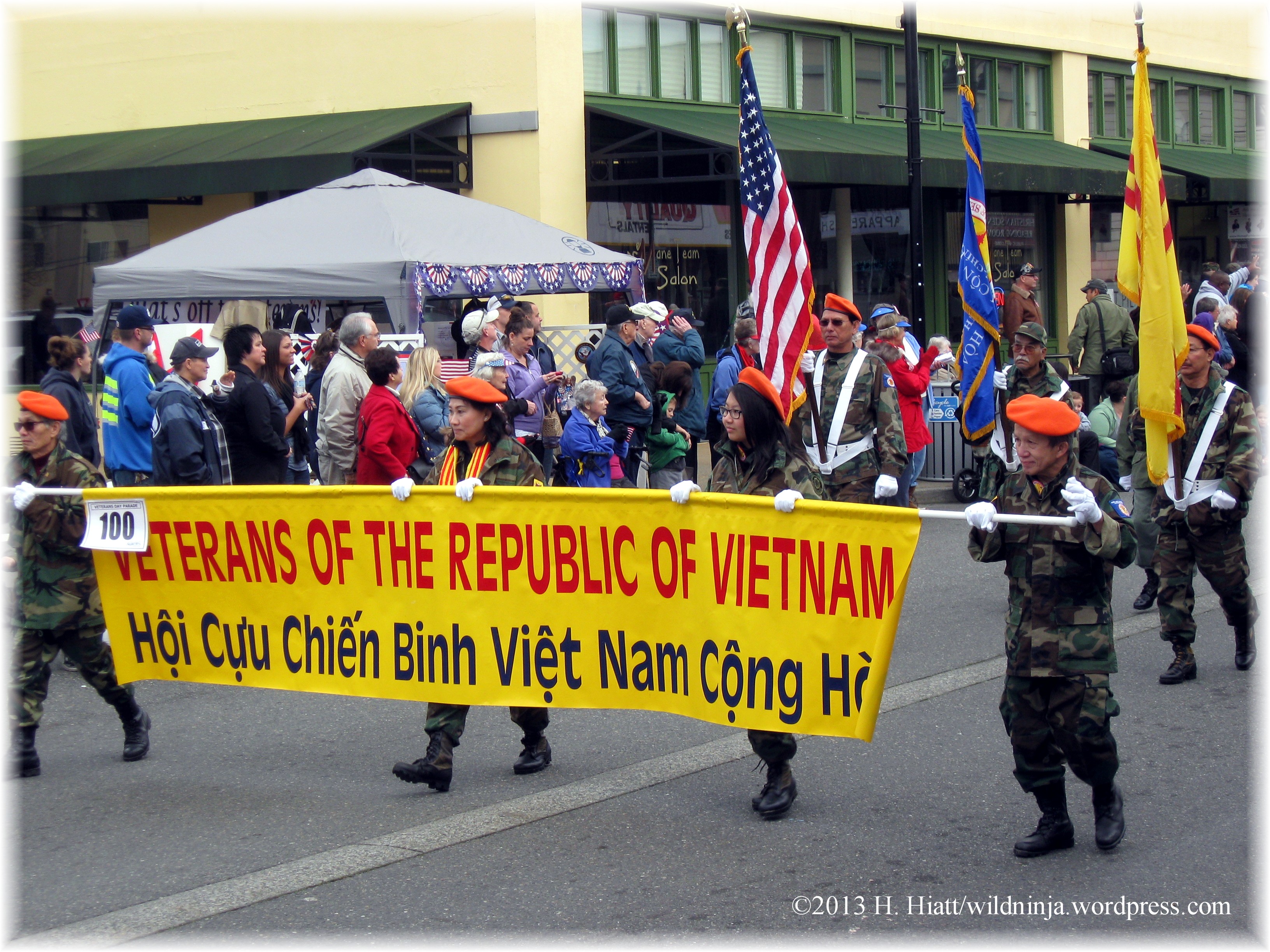 Vietnamese, Native American, Laotian, African American, Scottish, Italian, Hispanic, and other groups of veterans participated as well as ROTC groups, the American Legion, Veterans of Foreign Wars, Veterans for Peace, DAR, SAR, various historical reenactors, a Captain America look-alike, and many vehicles and marching bands.