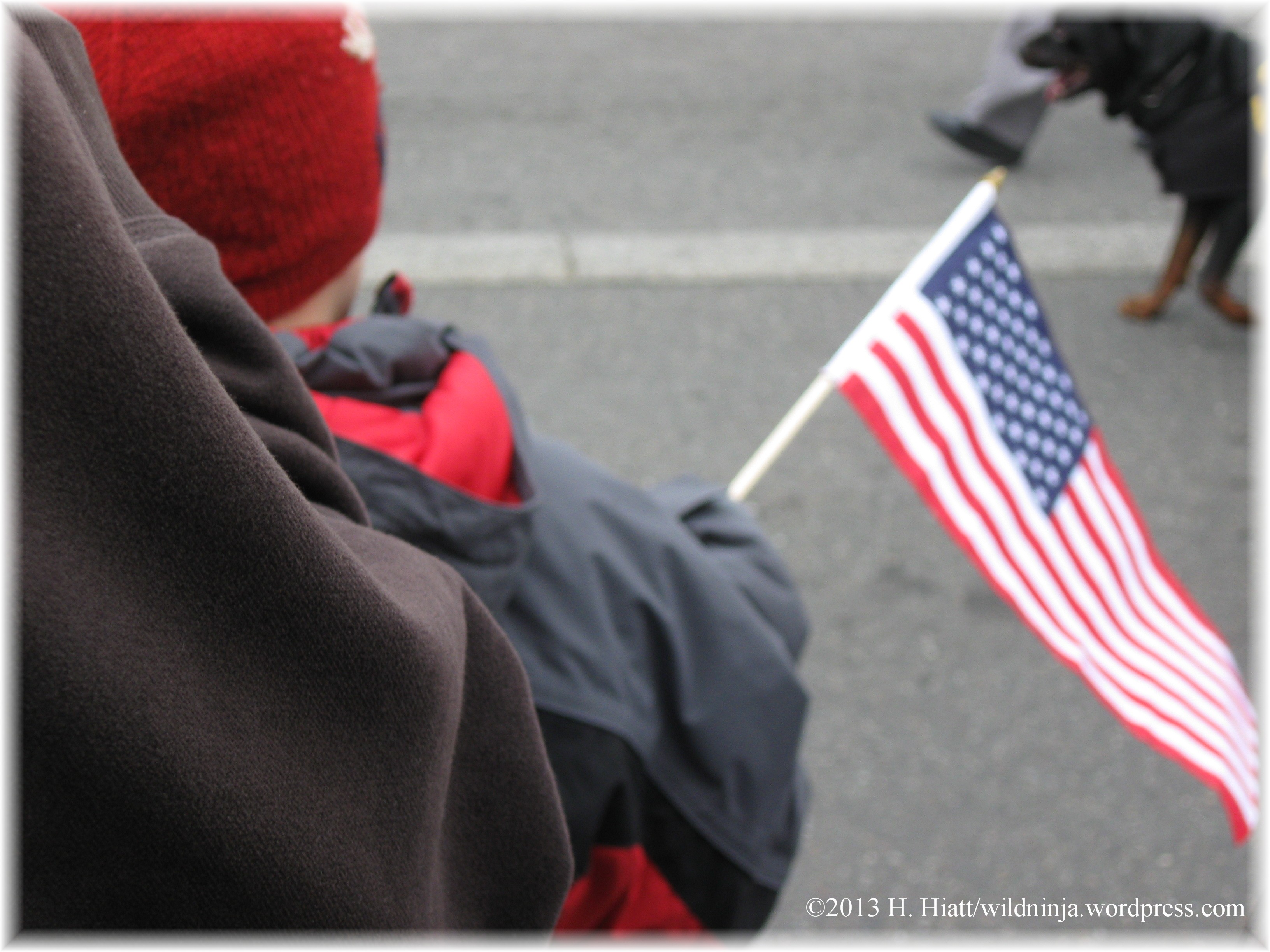 This picture was an accident. I was trying to capture the dog and his patriotic outfit, but instead retained a moving image of a father teaching his son to love and respect his country.