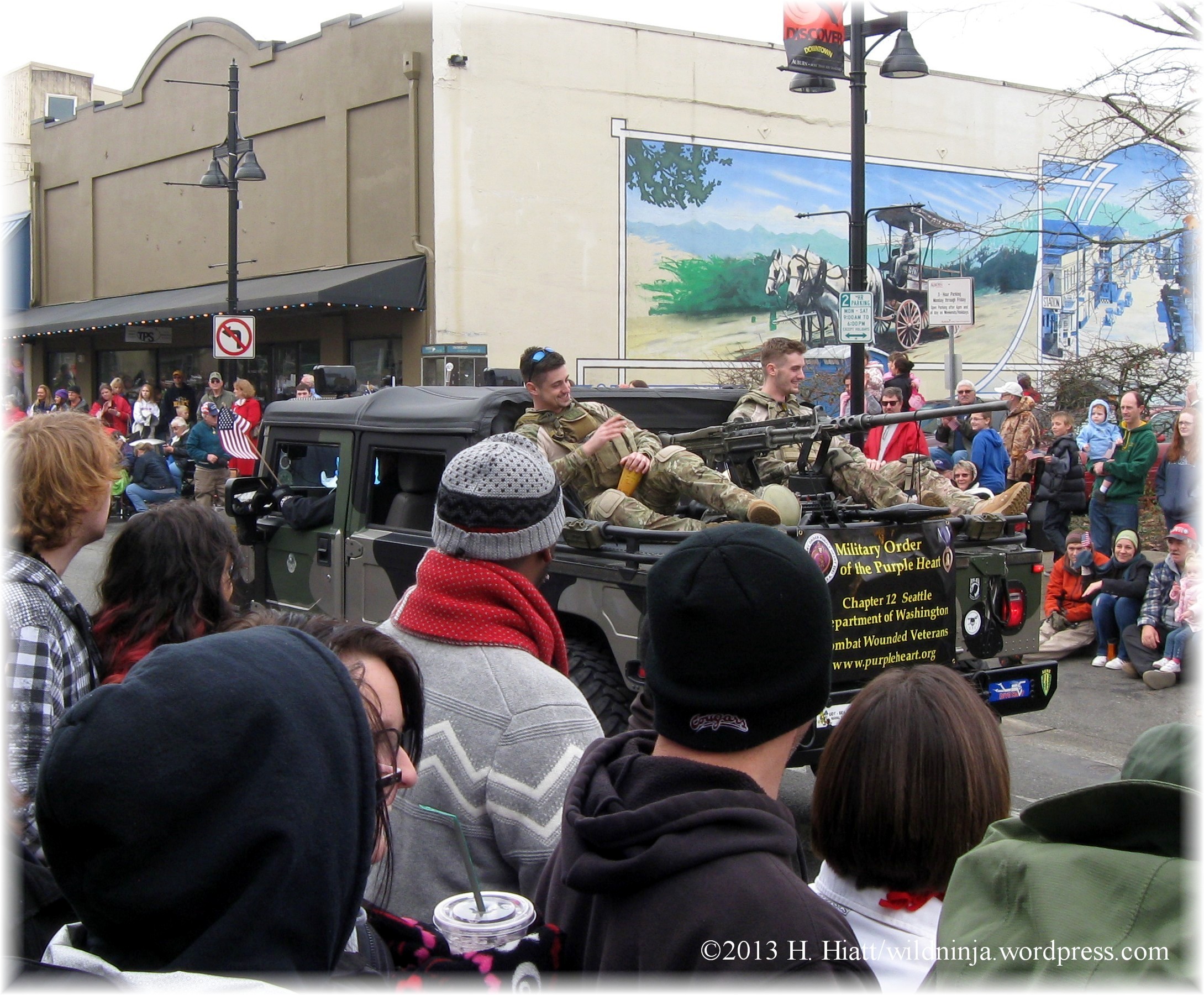 The Seattle chapter of the Military Order of the Purple Heart was represented, aka the Two Best Looking Guys in the Parade Ride in a Sexy, Manly Vehicle with a Large Gun. Sigh…