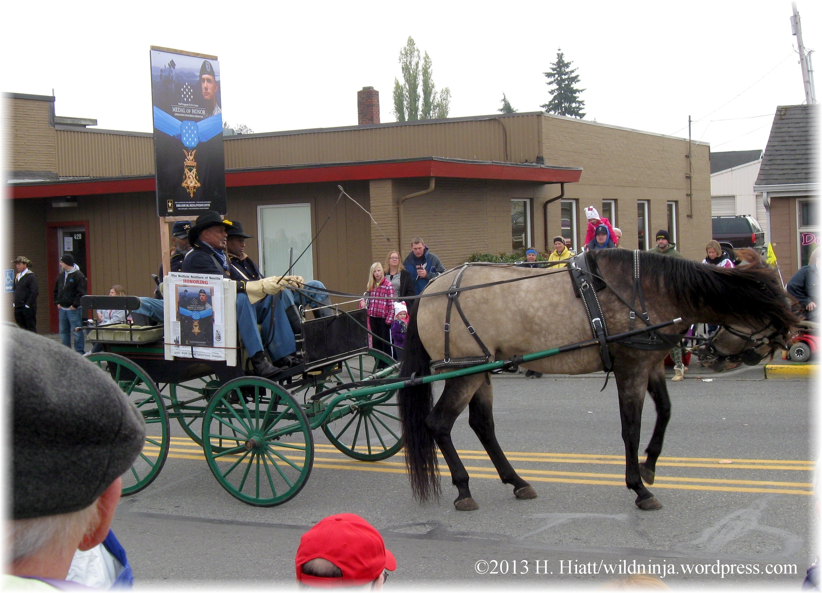 The Buffalo Soliders of Seattle’s horse no va. The horse decided that the brutally long wait was simply enough and didn’t want to go forward. For this he took repeated flicks to the backside (many parade-goers protested)…