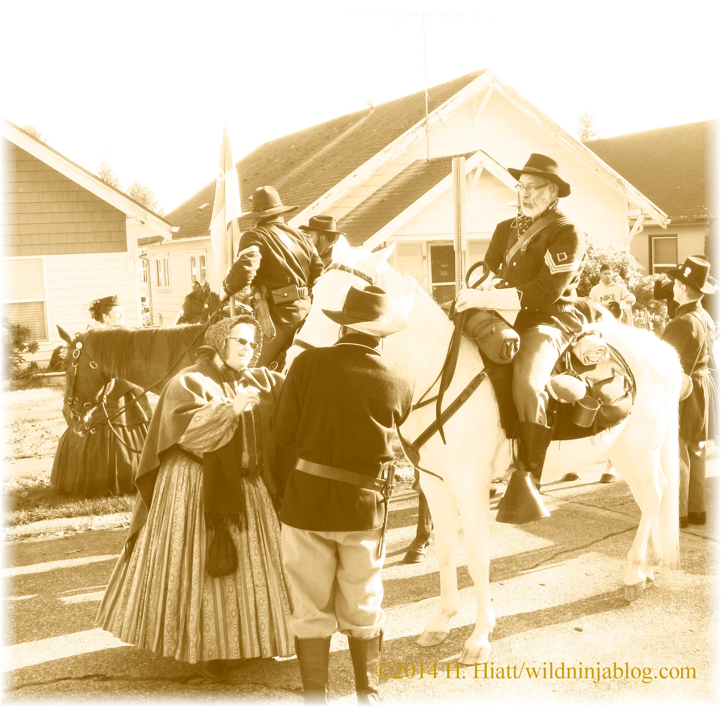 Again I encountered the Civil War near the corner of East Main and G Street SE. This Buffalo Soldier’s horse was being admired by the local townspeople.