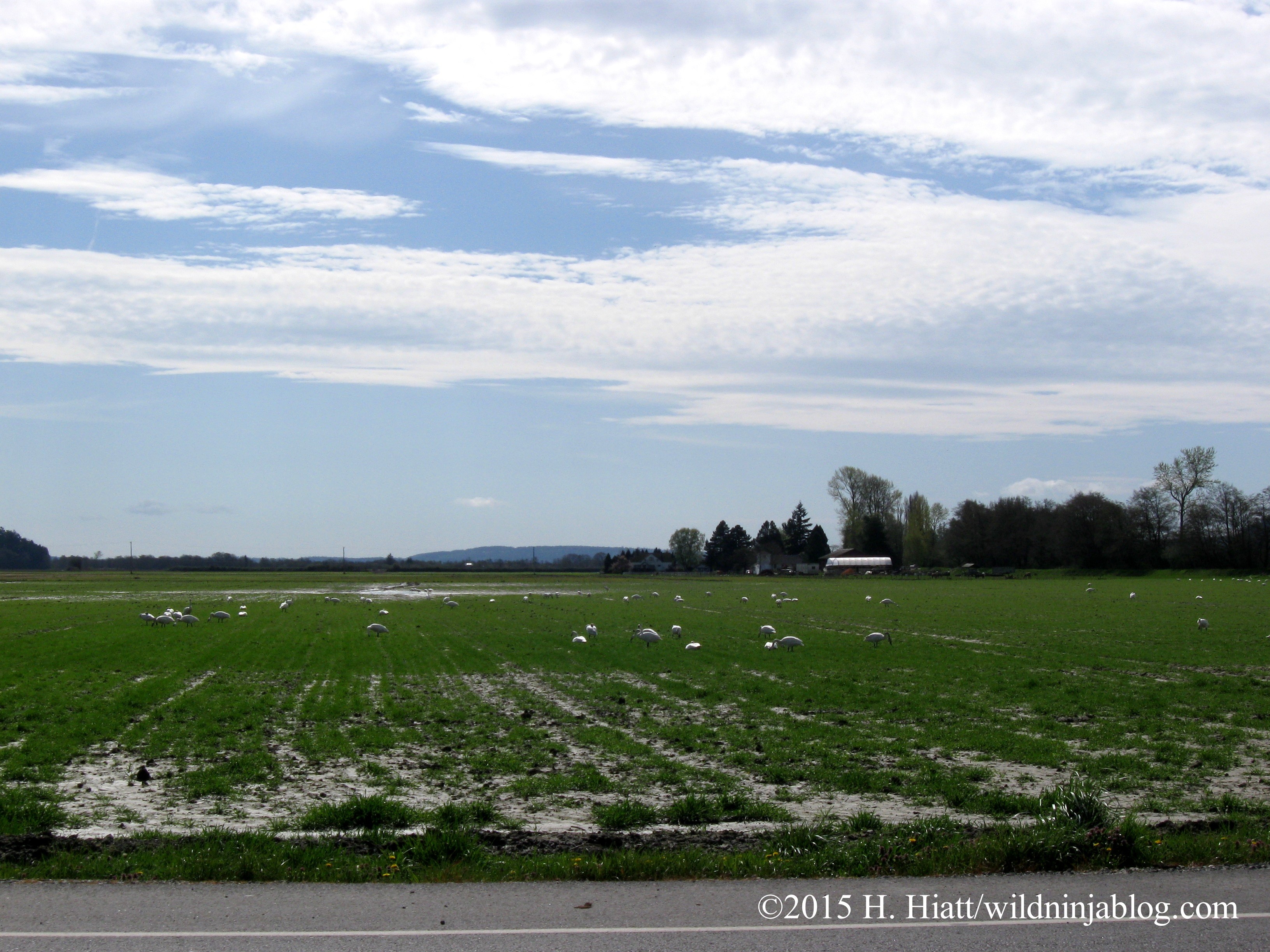 Further down the road I found members of the Russian invasion. Swans and snow geese come to north Snohomish and Skagit Counties every winter to feed in the farmland. Tens of thousands of them can be seen both on land and in the air. See Swans and snow geese are here for the winter (The Herald), as well as the official website for the Port Susan Snow Goose & Birding Festival.