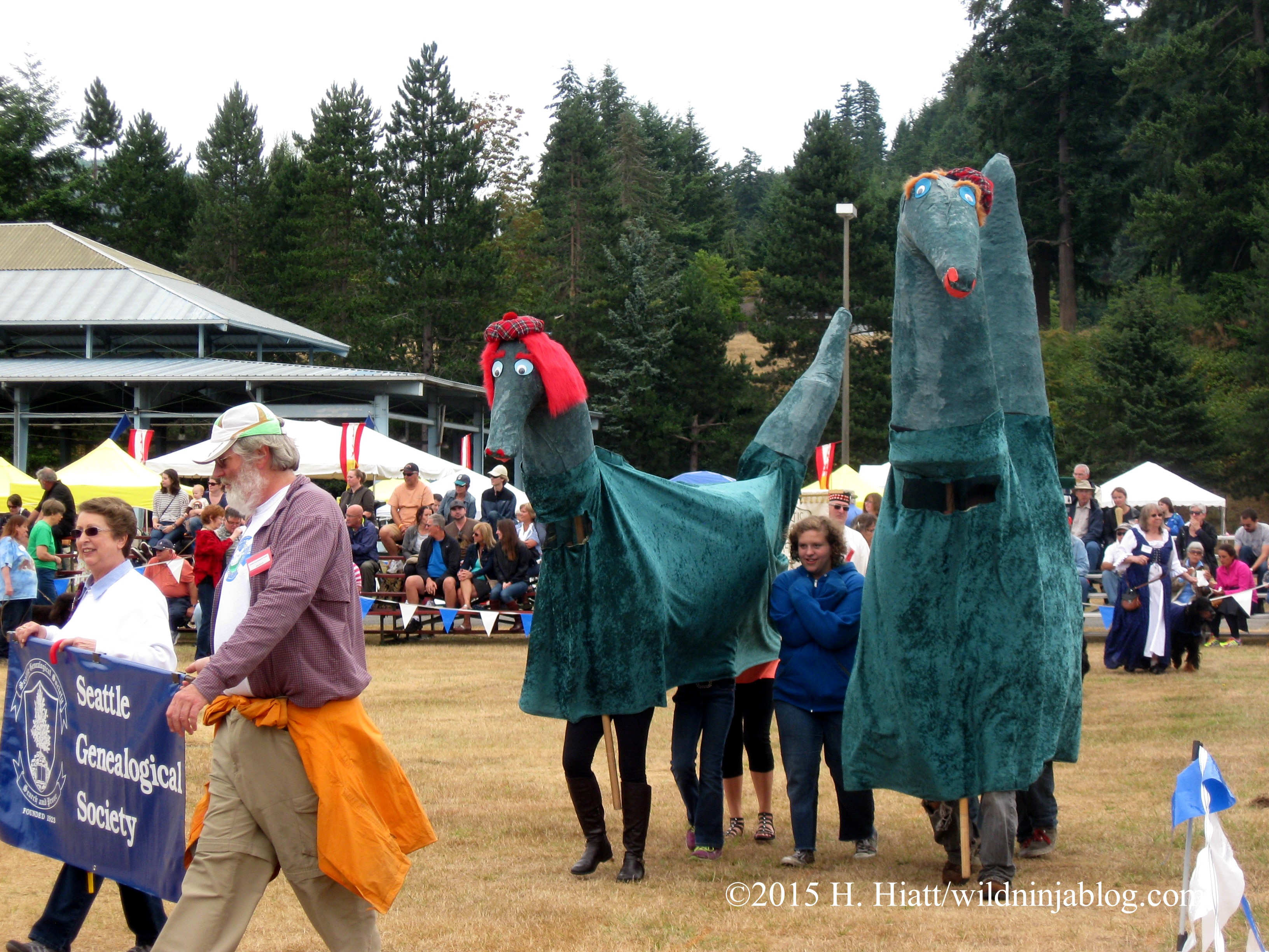 Mr. and Mrs. Nessie accompany the Seattle Genealogical Society. Later I found them posing for photos near the entrance to one of the exhibit halls. Normally elusive, they know they’re among friends at the games.