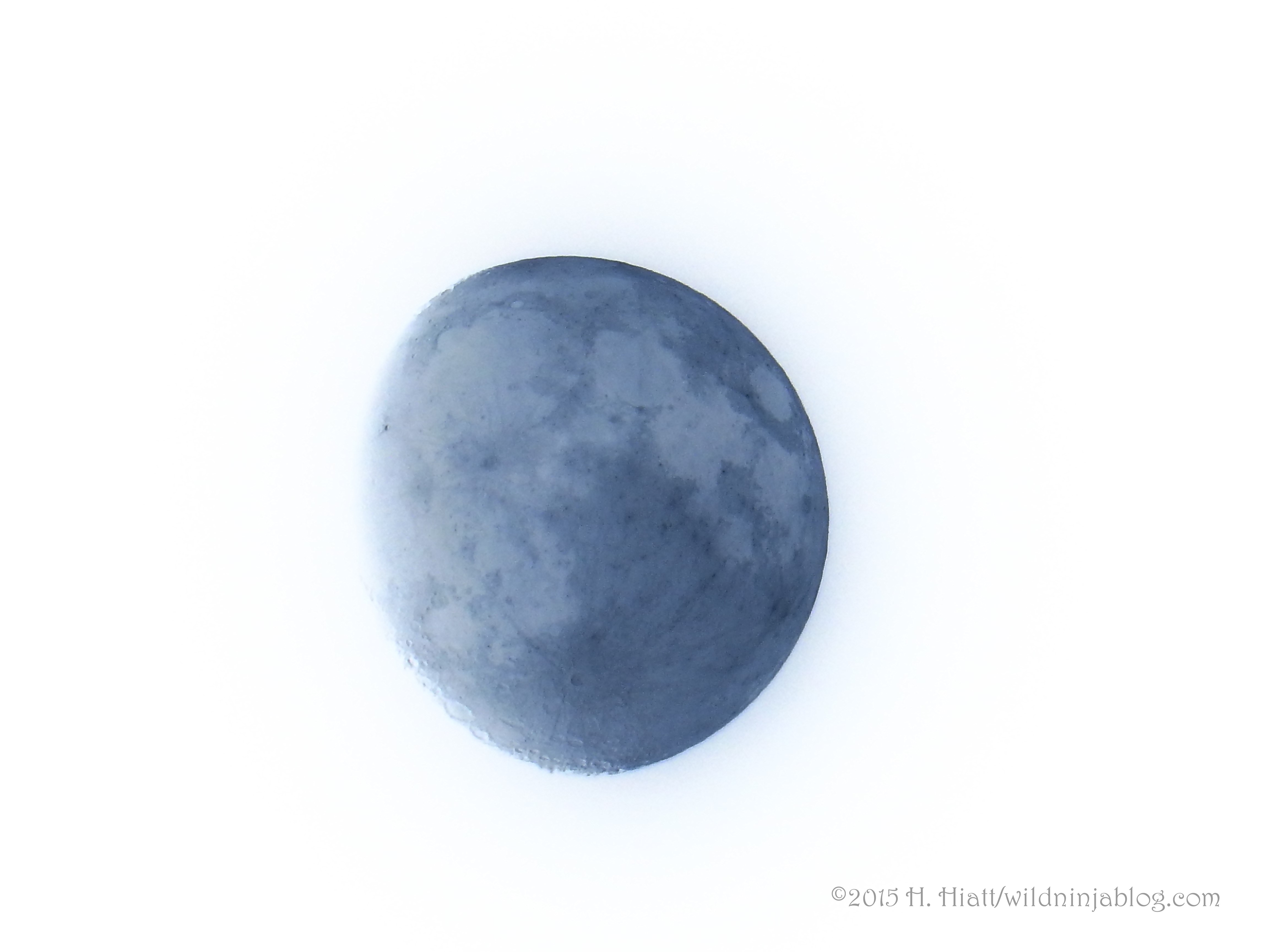 Tonight I was taking pictures of the gorgeous rising moon glowing through an ethereal midnight blue canopy. I was trying out a different camera and was very pleased that I could simply zoom in on the moon and see such detail. What an improvement!
