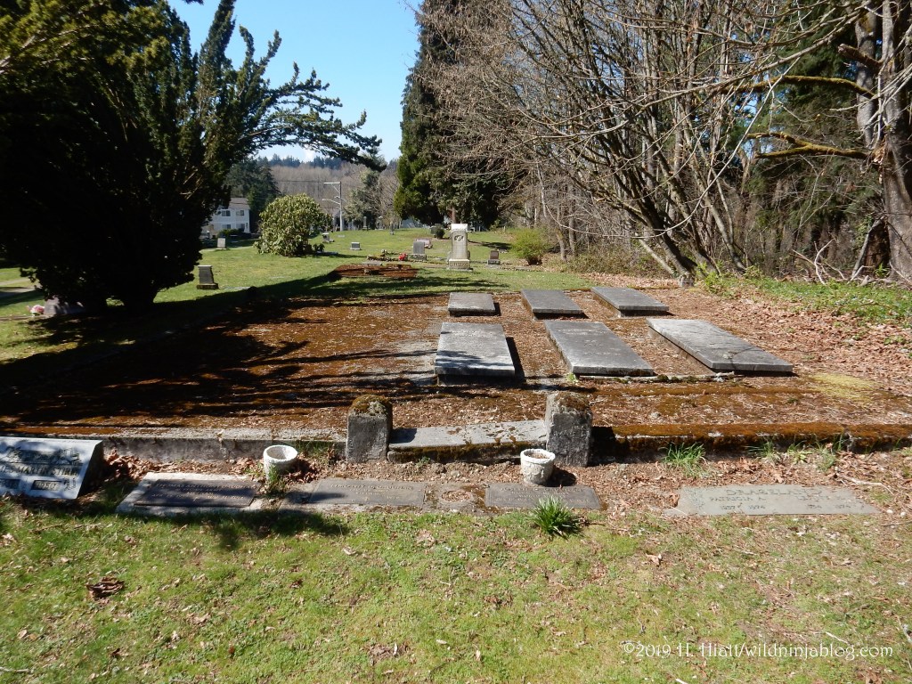 Above is the Ericksen family plot in the Bothell Pioneer Cemetery near UW Bothell, established 1889. Like the house they built so long ago, their graves face east, hoping for new life.