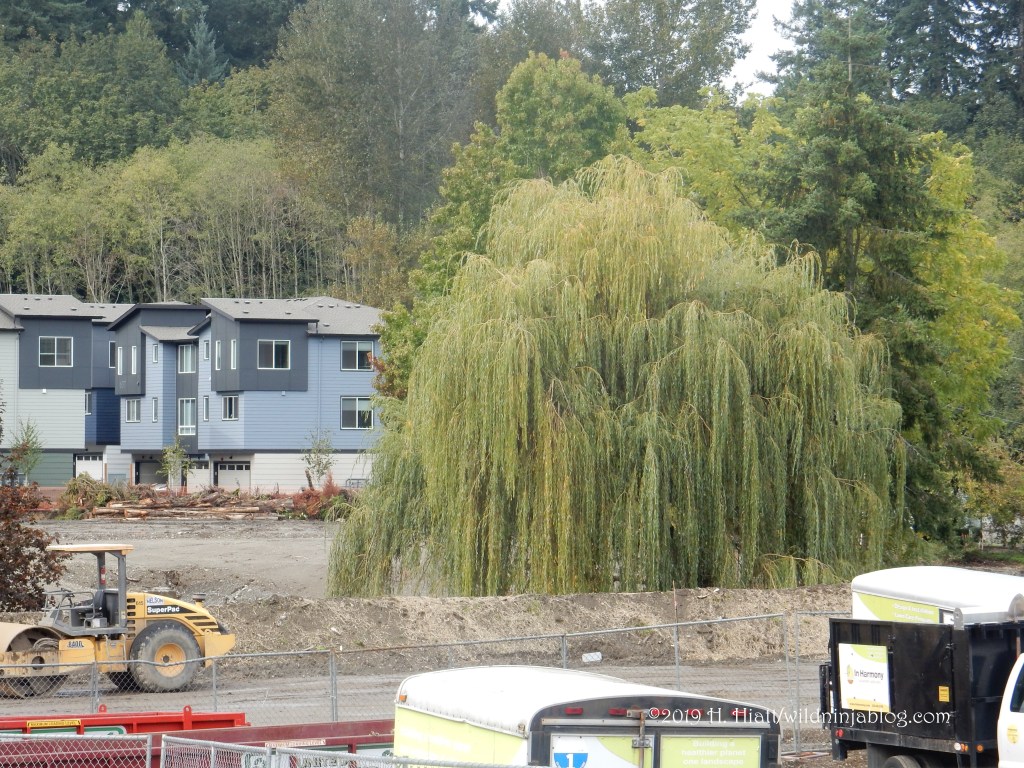 This is now October 2019. The former Country Village site looks like someone scraped away all of its trees and creatures and structures with a merciless metal spatula. Someone meaning Progress. This is what’s happening throughout King County as forests are being razed for huge developments, like the travesty in Black Diamond where thousands of cookie cutter homes will transform that wild, tiny mining town into Anywhere, USA.