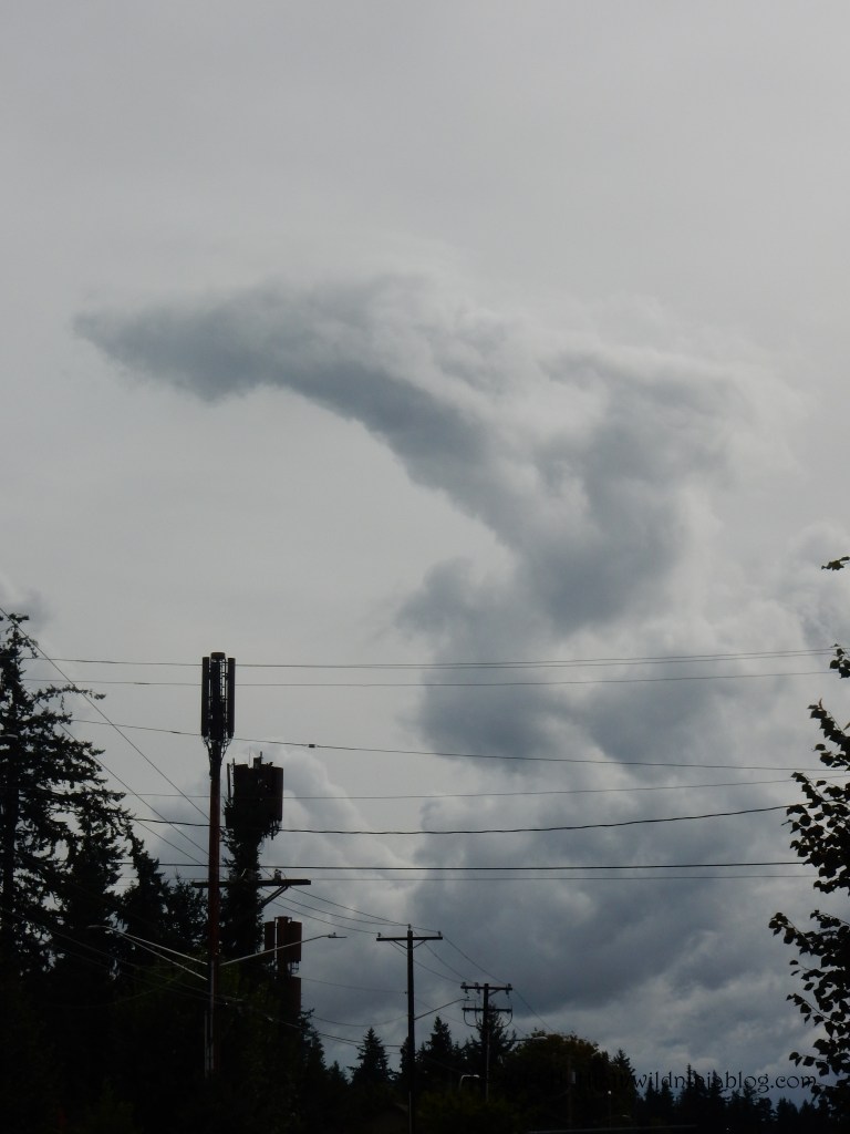After taking that photo I looked south. This cloud looked like a hand, a tidal wave, an angry face, or perhaps, if you tilt your head to the left, a mighty angel sheltering something with its wings.