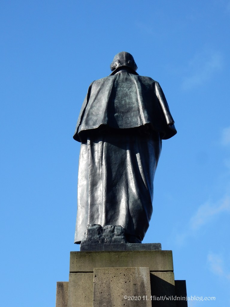 After having our minds blown in Kane Hall, we marched westward to the more than 100 year-old statue of George Washington in Red Square. This statue, as I’ve discussed in previous posts, was made possible by the Daughters of the American Revolution and local schoolchildren. It’s fitting that we return every year to honor our first president. As is the case with all presidents, he was not a perfect man, but there is no such thing, and he is unique in the annals of history. I am proud to honor an imperfect man, whose courage helped birth our nation, as my ancestors did.