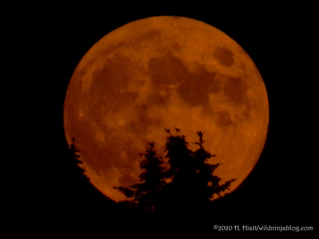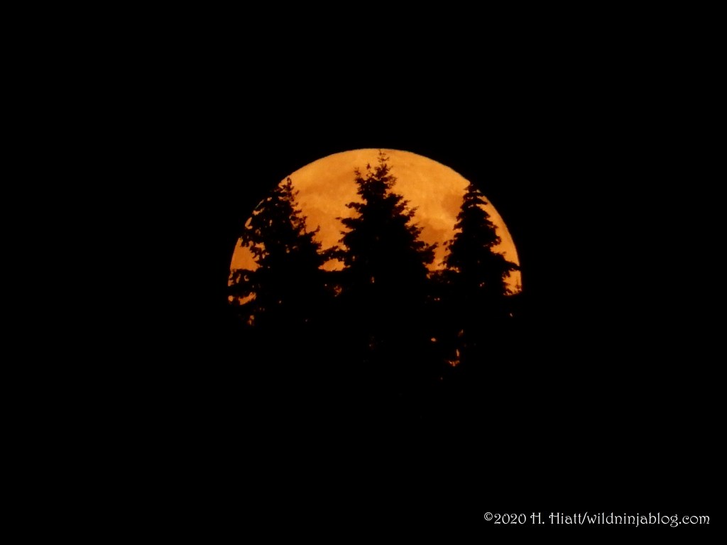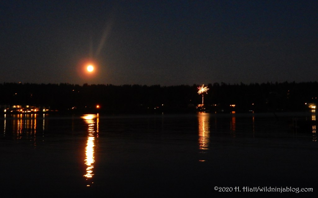 Moonrise on Independence Day, July 4th, 2020 in Seattle was 9:11 P.M. By that time the penumbral lunar eclipse was happening, causing a slight shadow to fall upon the full moon.