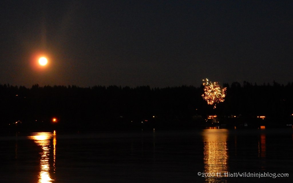 It was amazing to see the fireworks light up the water next to the shimmering trail of moonlight.