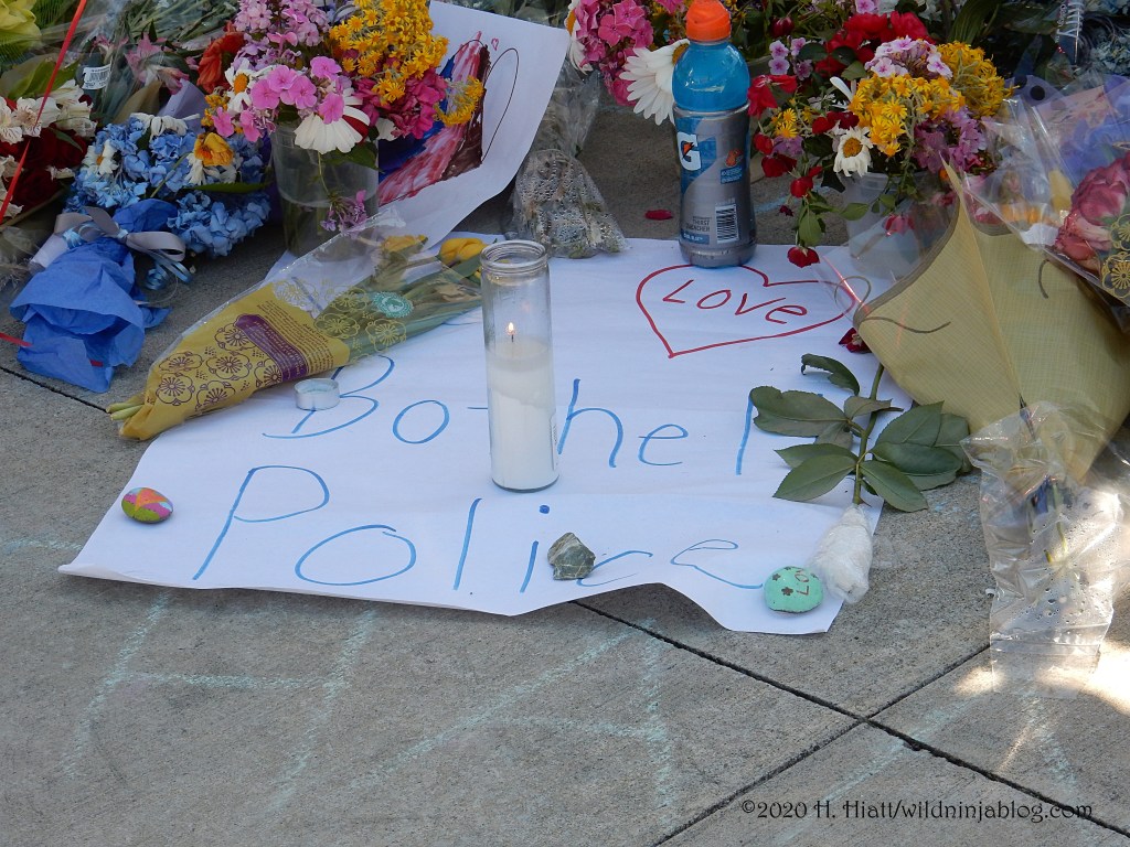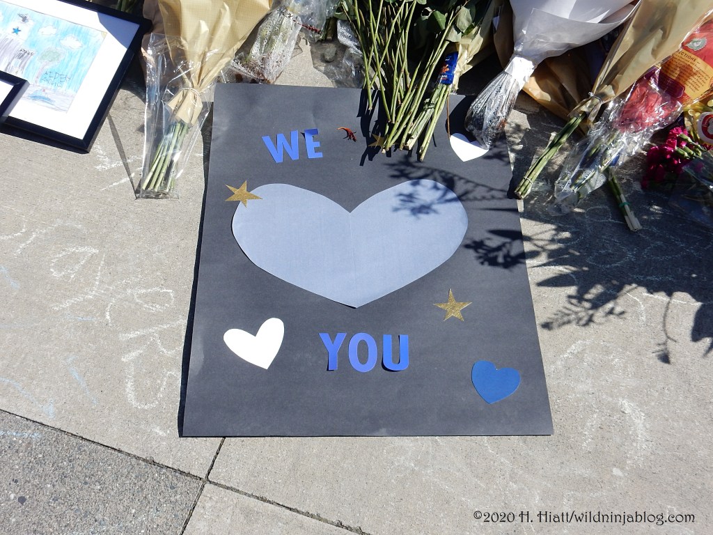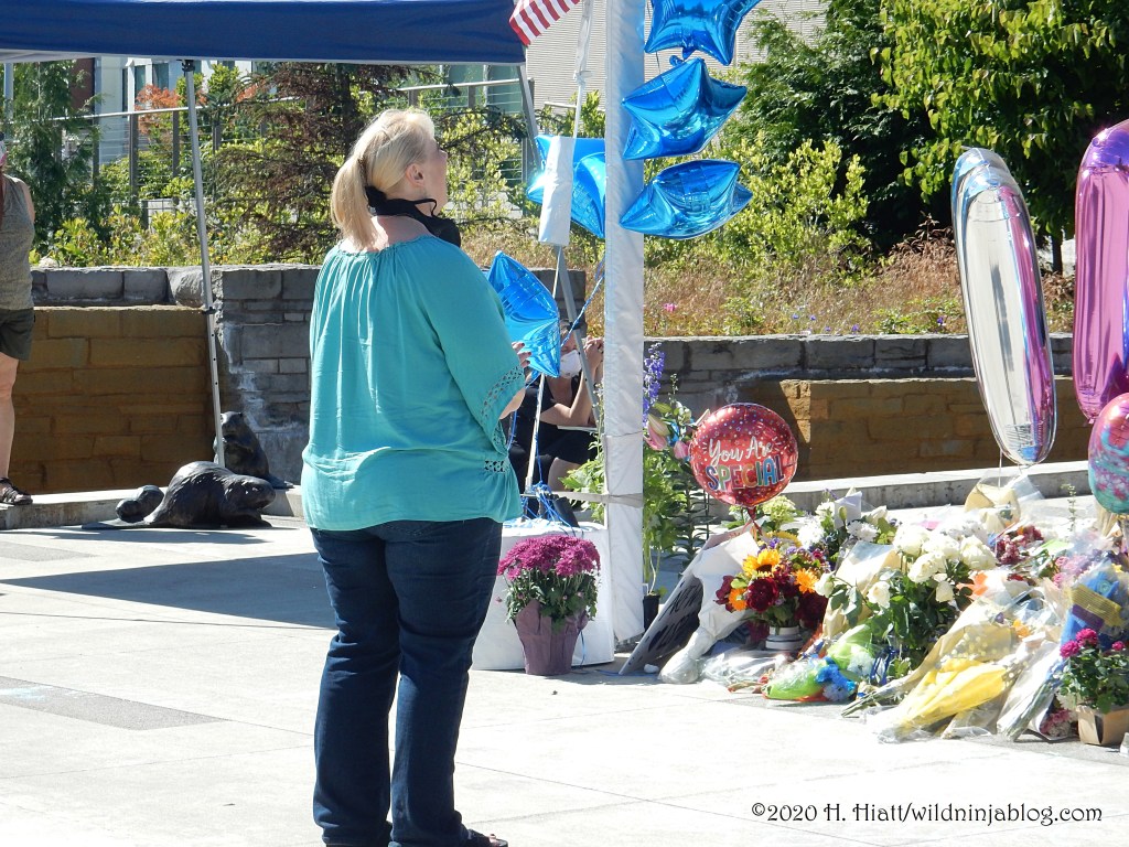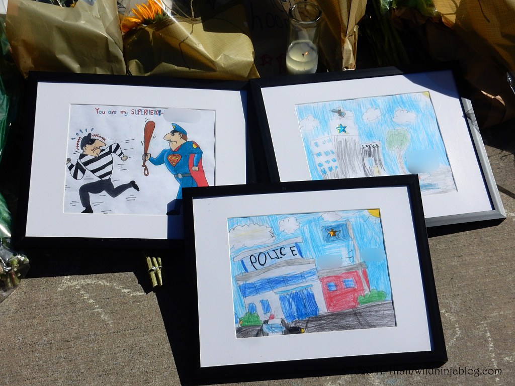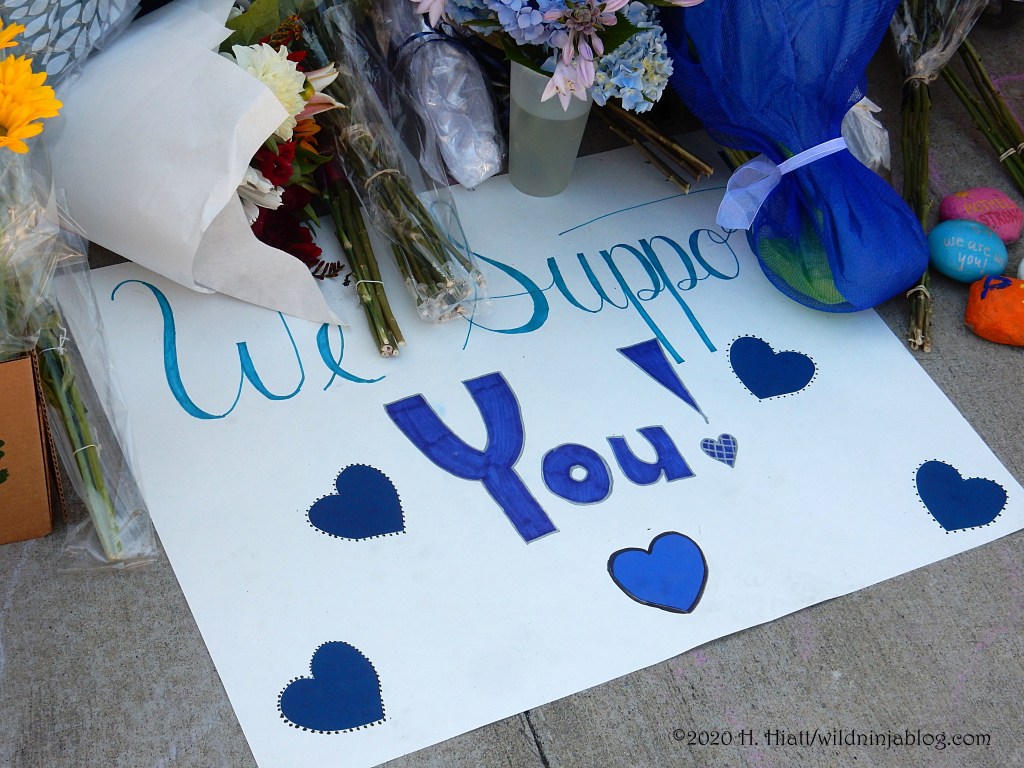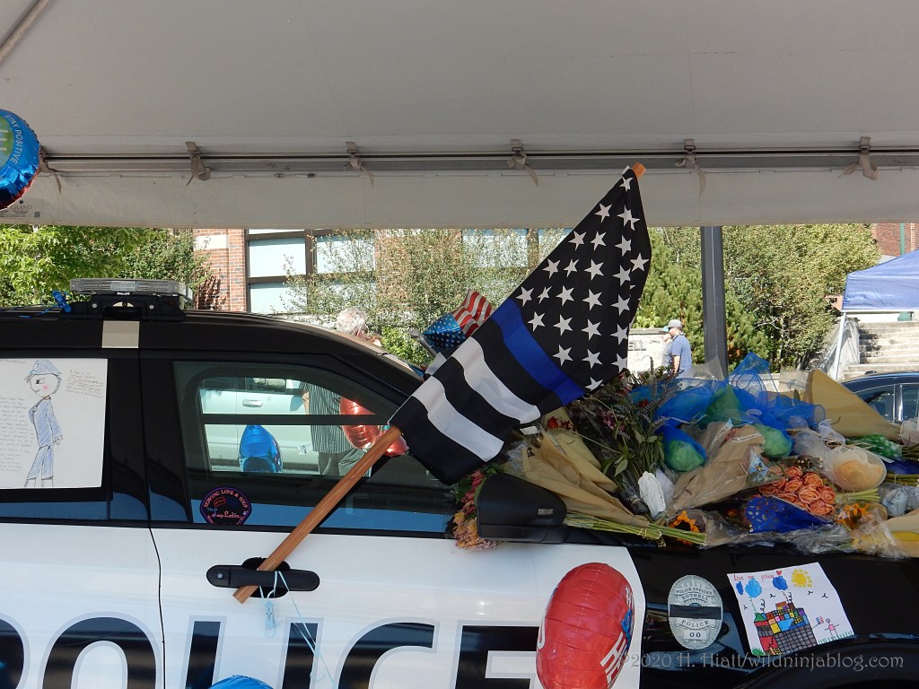 Last night a visit to the growing memorial to the Bothell police officer who was murdered resulted in the post You Matter. I visited the site again tonight and spent some quality time with both strangers and friends as we honored this brave man. The memorial continues to grow. People of all types continue to gather there to express appreciation to our area officers, including the officer who was wounded in this incident.