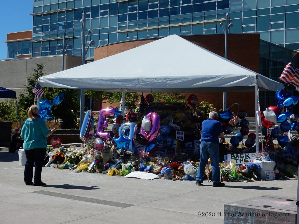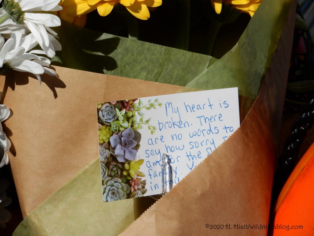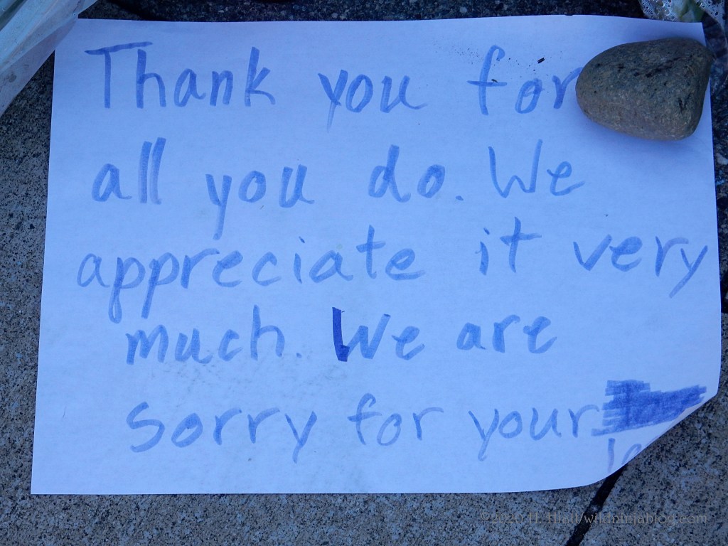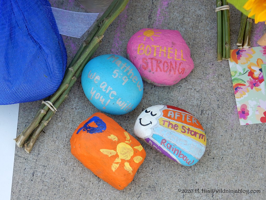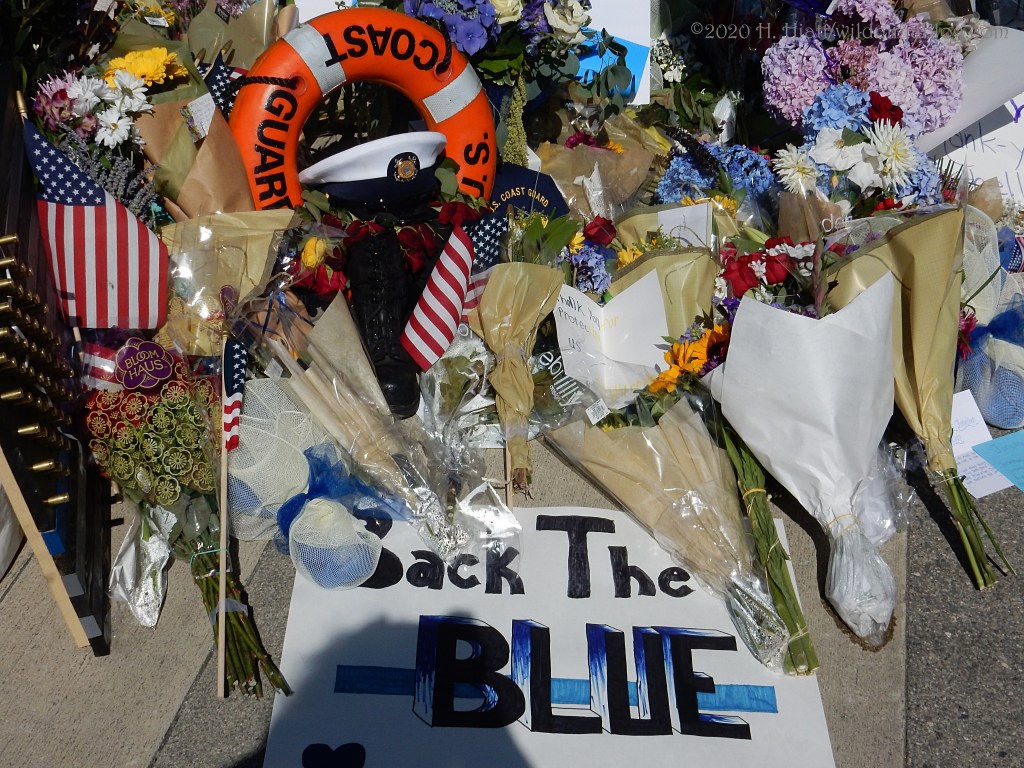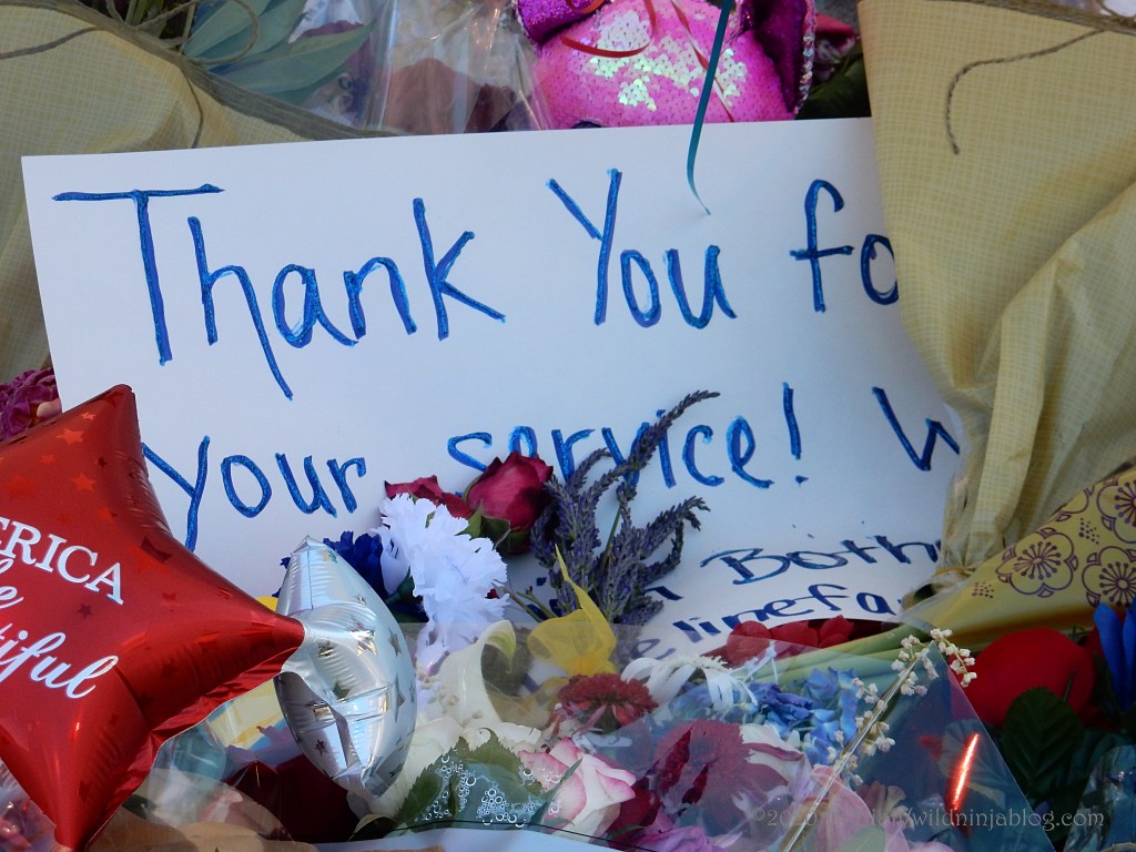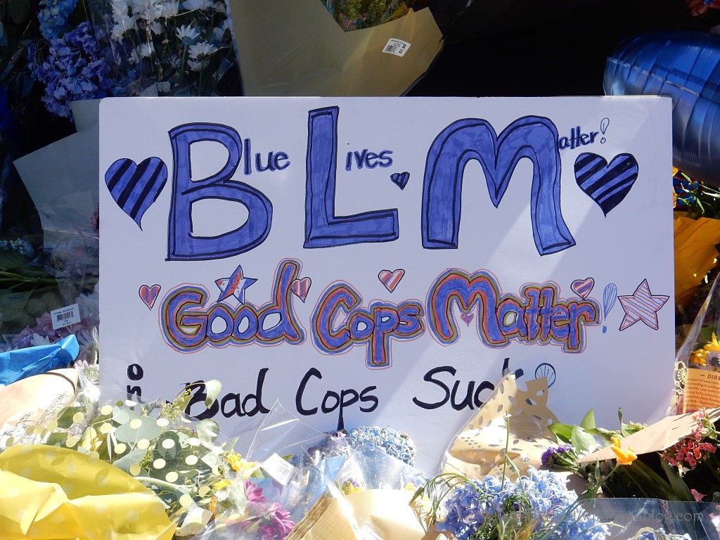 Last night a visit to the growing memorial to the Bothell police officer who was murdered resulted in the post You Matter. I visited the site again tonight and spent some quality time with both strangers and friends as we honored this brave man. The memorial continues to grow. People of all types continue to gather there to express appreciation to our area officers, including the officer who was wounded in this incident.