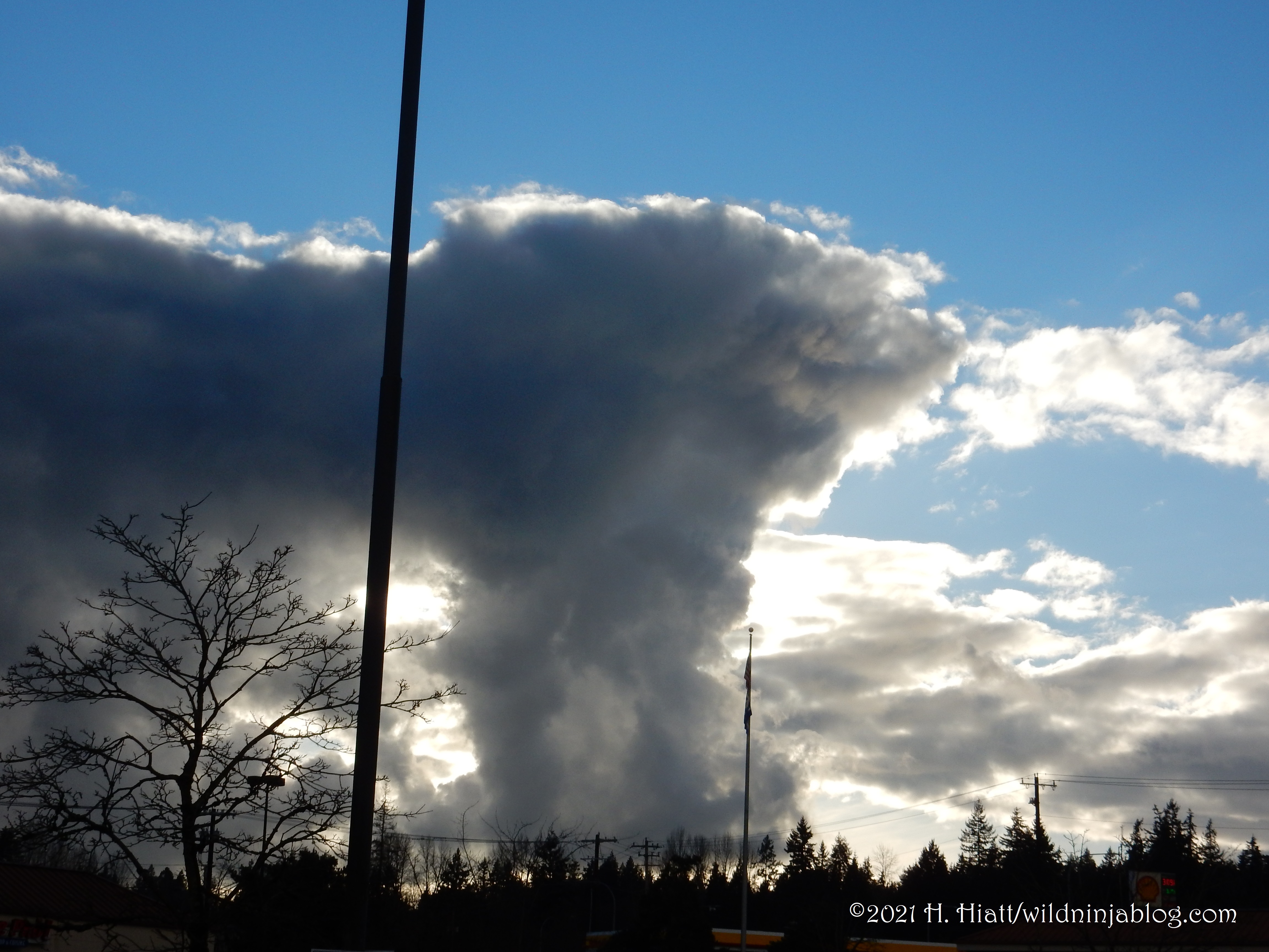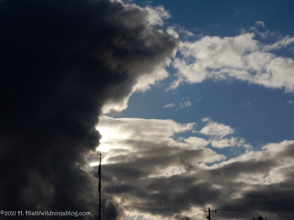 The light coming from behind the tall cloud was blinding. You can see how abysmally dark that tall cloud had become, and somewhere behind it the sun was fighting back, all 27 million degrees in its core fueling the furious blaze.